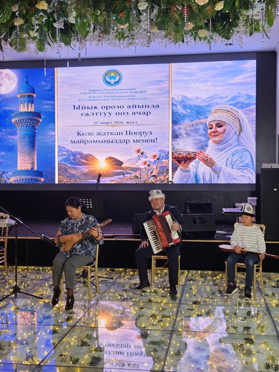 Program, Ramazan ayının manevi iklimi ile Nevruz Bayramı’nın coşkusunu bir araya getirirken, Kırgız halk müziği ve geleneksel enstrümanlar eşliğinde icra edilen eserler katılımcılara kültürel bir şölen sundu. Misafirlere Kırgız mutfağından seçkin lezzetler ikram edilirken, gece boyunca samimi ve birlik dolu bir atmosfer hâkim oldu.